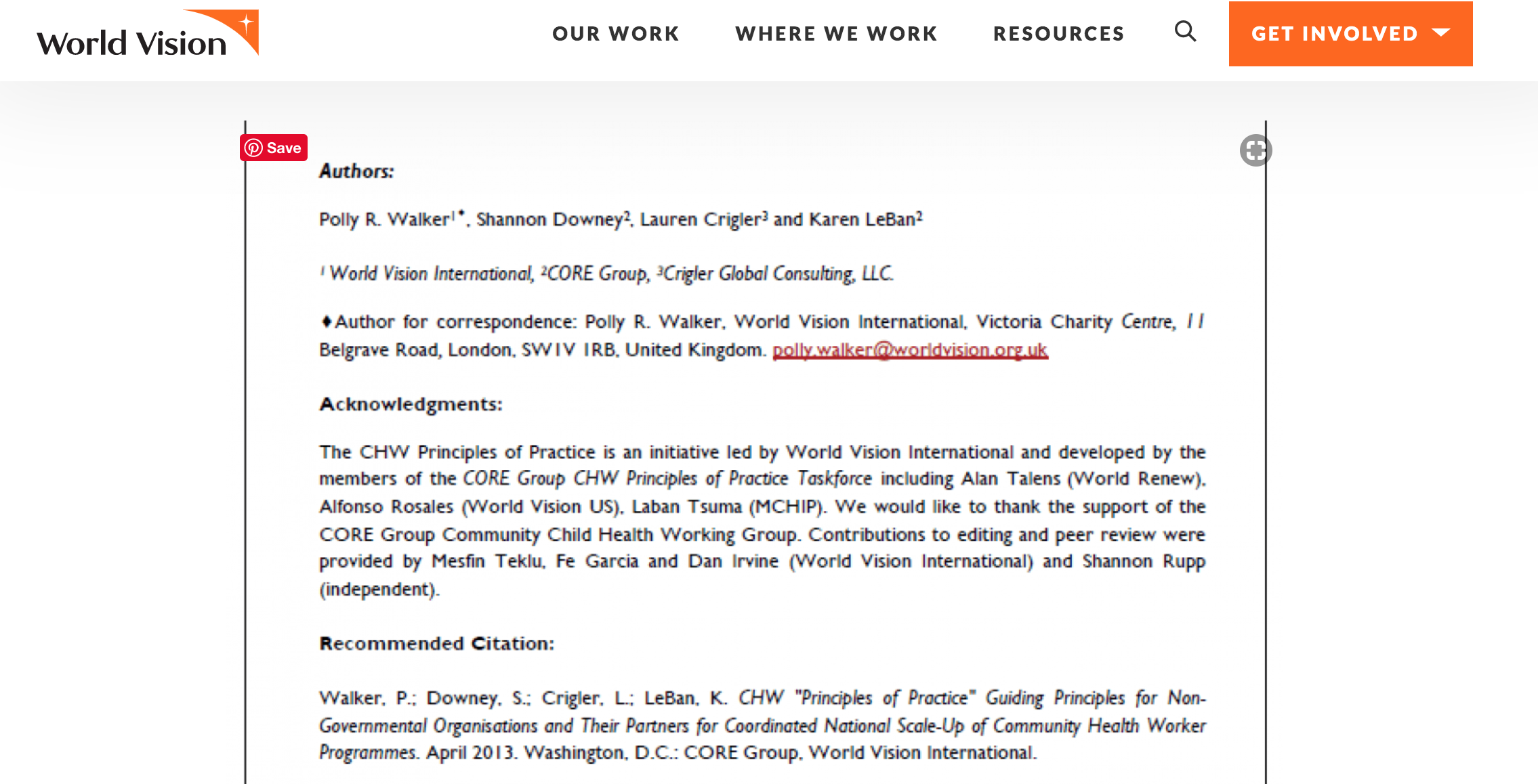 The Principles of Practice outlined in this document are intended as a framework for advocacy, programming and partnership between implementing NGOs, government and donor agencies working with key CHW cadres in countries for which rapid and urgent scale-up of CHW programmes is a priority. They aim to guide NGOs to work with existing health structures through strong, long-term partnerships in order to deliver consistently high standards of quality implementation, training and support, toward the creation of community health workforces that are sustainable, functional and effective and can be successfully implemented at scale…..more