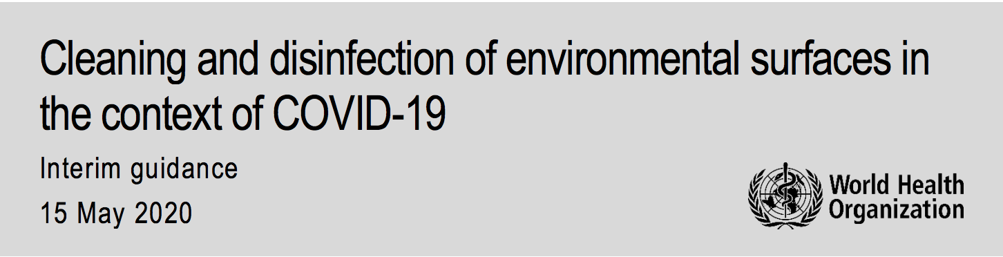 The purpose of this document is to provide guidance on the cleaning and disinfection of environmental surfaces in the context of COVID-19. This guidance is intended for health care professionals, public health professionals and health authorities that are developing and implementing policies and standard operating procedures (SOP) on the cleaning and disinfection of environmental surfaces in the context of COVID-19……more