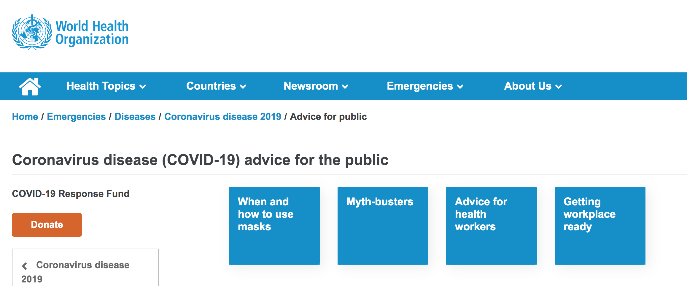 - WHO: Novel Coronavirus (2019-nCoV) advice for the public