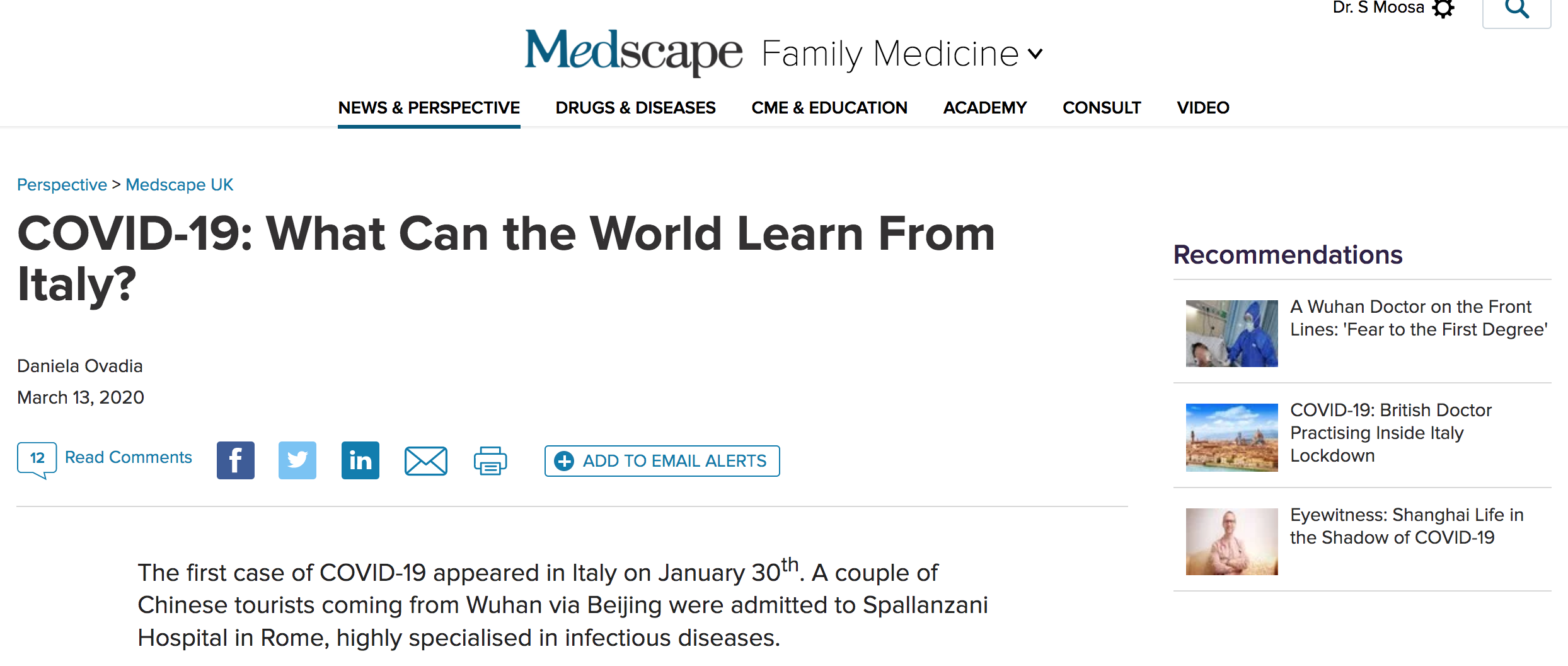 Then, quite abruptly, on February 20th at midnight, the Councillor for Welfare in Lombardy, Giulio Gallera, announced that Mattia, a 38-year-old Italian from the small city of Codogno, in Lombardy, was hospitalised for a severe case of atypical pneumonia and tested positive for coronavirus. He had not travelled to China nor had any contact with people coming from Asia. …..more