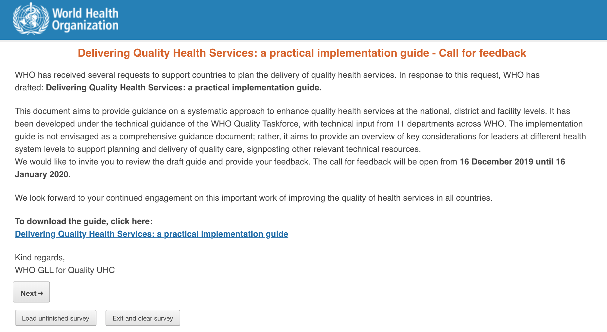 We look forward to your continued engagement on this important work of improving the quality of health services in all countries.