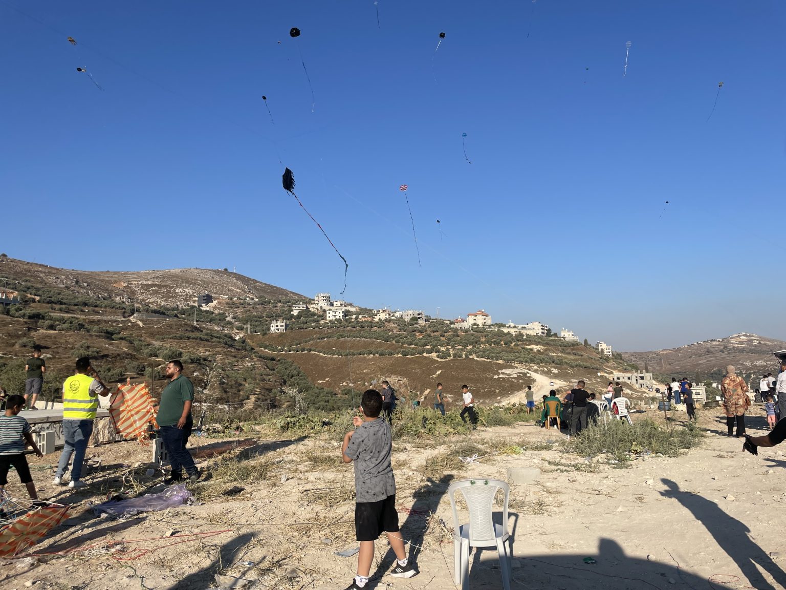 All around me I hear the laughter of children and see their smiling faces as they fly kites. It is hard to believe that just a few hours earlier, over 700 olive trees had been set ablaze. In the village of Burin just outside of Nablus, where settlements encroach on almost every side, flying kites is an act of resistance. This is why Burin holds a kite festival annually for the local community to join together in joy and resistance. This is the 19th kite festival, though the festival has not been held for consecutive years due to circumstances like COVID and settler violence