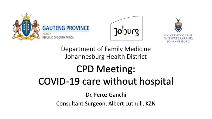 Jhb CPD: “COVID-19 Care with no hospital” 3pm Thurs 21 Jan