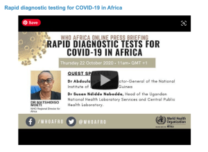 “The widespread use of high-quality rapid testing in Africa can revolutionize the continent’s response to COVID-19,” said Dr. Matshidiso Moeti, WHO Regional Director for Africa. “The new, antigen-based rapid diagnostic tests will help meet the huge testing needs in Africa.”….more