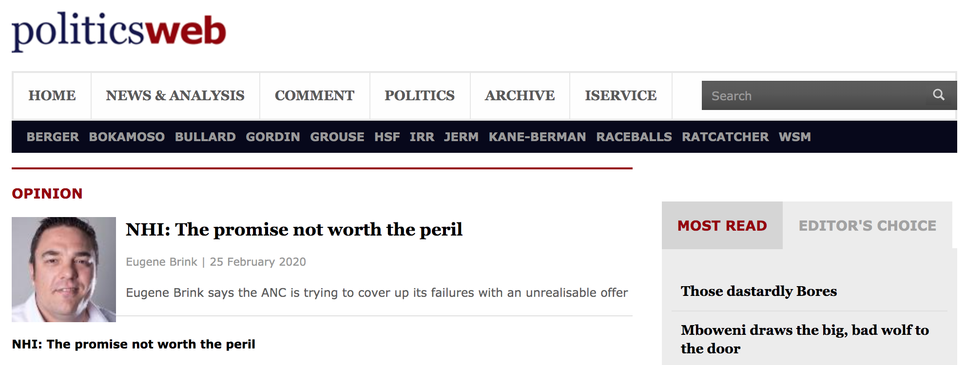 I was asked at a roundtable discussion with health minister Dr Zweli Mkhize in December whether I support the idea behind NHI. My answer was that I support improved health services for everyone in the country, but that NHI is not a means to that end. I would think all reasonable and compassionate people do…..more