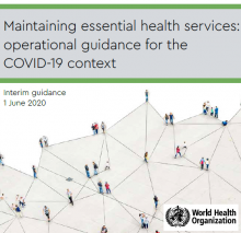 Countries around the world are facing the challenge of increased demand for care of people with COVID-19, compounded by fear, misinformation and limitations on movement that disrupt the delivery of health care for all conditions. Maintaining essential health services: operational guidance for the COVID-19 context recommends practical actions that countries can take at national, subregional and local levels to reorganize and safely maintain access to high-quality, essential health services in the pandemic context. It also outlines sample indicators for monitoring essential health services, and describes considerations on when to stop and restart services as COVID-19 transmission recedes and surges. This document expands on the content of pillar 9 of the COVID-19 strategic preparedness and response plan, supersedes the earlier Operational guidance for maintaining essential health services during an outbreak, and complements the recently-released Community-based health care, including outreach and campaigns, in the context of the COVID-19 pandemic. It is intended for decision-makers and managers at the national and subnational levels. …more