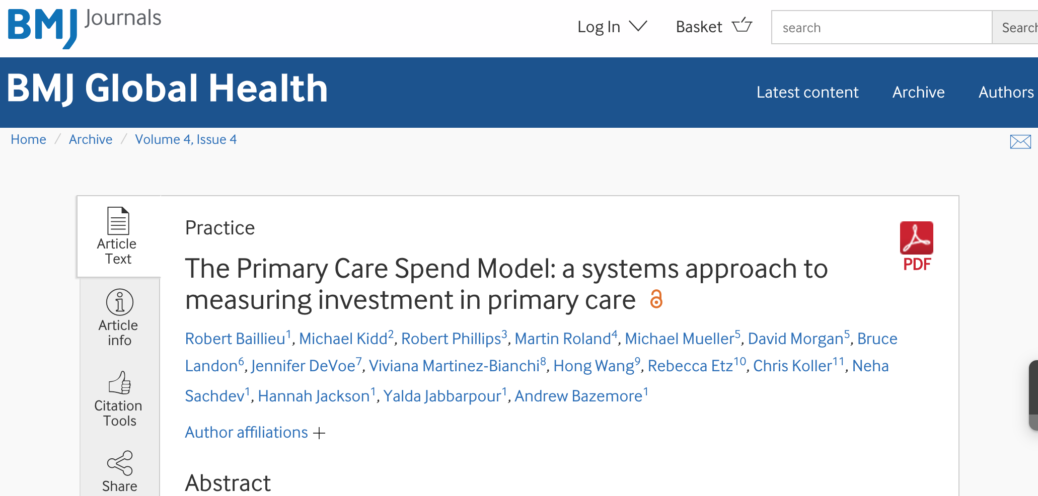 Increased investment in primary care is associated with lower healthcare costs and improved population health. The allocation of scarce resources should be driven by robust models that adequately describe primary care activities and spending within a health system, and allow comparisons within and across health systems. However, disparate definitions result in wide variations in estimates of spending on primary care. We propose a new model that allows for a dynamic assessment of primary care spending (PC Spend) within the context of a system’s total healthcare budget. The model articulates varied definitions of primary care through a tiered structure which includes overall spending on primary care services, spending on services delivered by primary care professionals and spending delivered by providers that can be characterised by the ‘4Cs’ (first contact, continuous, comprehensive and coordinated care). This unifying framework allows a more refined description of services to be included in any estimate of primary care spend and also supports measurement of primary care spending across nations of varying economic development, accommodating data limitations and international health system differences. It provides a goal for best accounting while also offering guidance, comparability and assessments of how primary care expenditures are associated with outcomes. Such a framework facilitates comparison through the creation of standard definitions and terms, and it also has the potential to foster new areas of research that facilitate robust policy analysis at the national and international levels…..more