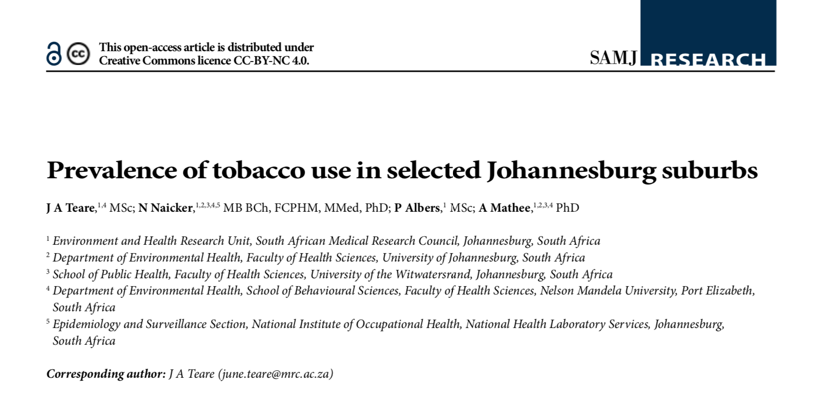 Results. Over the 7-year period of the analysis, smoking levels remained unchanged. The proportion of households with one or more smokers varied significantly across the five study neighbourhoods. Approximately 20% of households in Hillbrow and as many as 77% in Riverlea had a member who smoked.