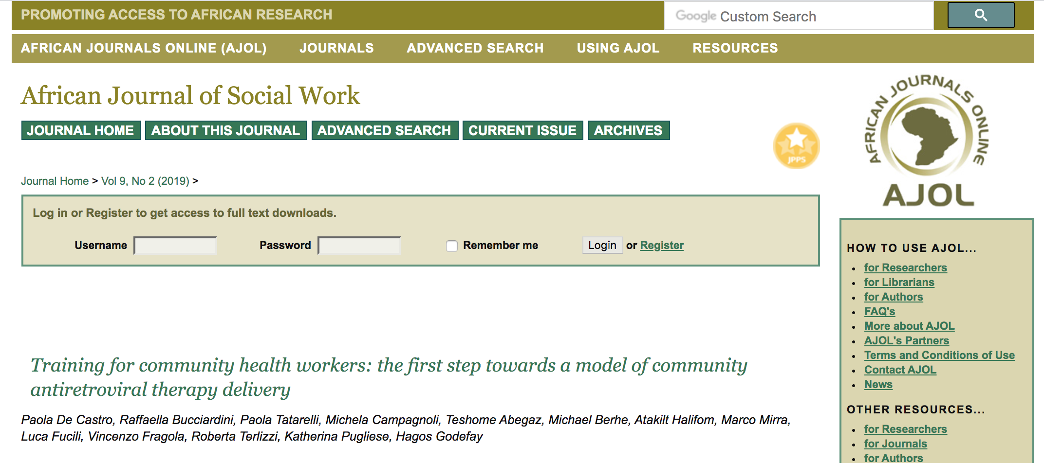 The Ethiopian health system is facing complex challenges in increasing the access of HIV-patients to antiretroviral treatment (ART) and managing a growing number of patients on ART. According to the World Health Organisation (WHO) guidelines on the use of antiretroviral drugs, trained community health workers (CHWs) can be successfully involved in the management of innovative models of community ART delivery. It is our hypothesis that new models of community ART delivery may also be developed in Tigray. Based on consultation with the Tigray Regional Health Bureau (TRHB) we started a training program addressed to CHWs aimed at reinforcing their communication and clinical skills. Training methods included both face-to-face and self-learning sessions, with the support of ad hoc didactic toolkits developed by a multidisciplinary team. In this paper we present and discuss the preliminary results of the training program…..more